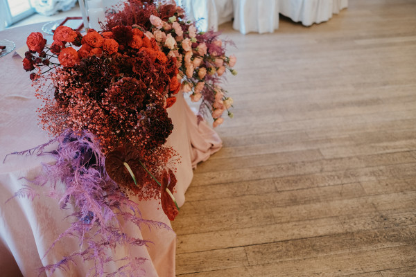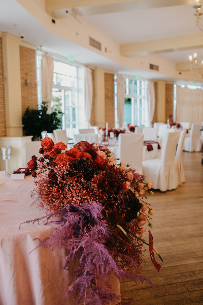 Marsala, pink and blush - strong colors like their love, arranged in a modern and sophisticated style of wedding decorations for 2023.